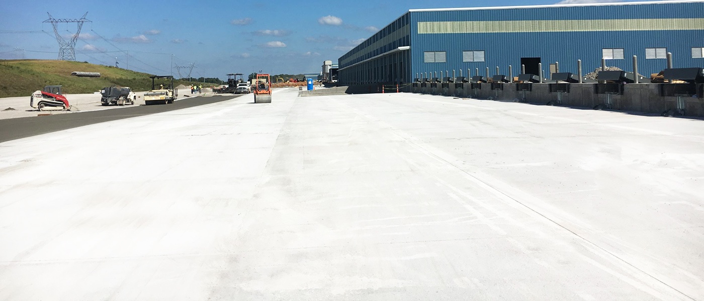 Сфера послуг включає роботи з геодезичних розвідок та земляних робіт ще до початку укладання бетонної суміші з урахуванням нарізки та герметизації деформаційного шва. Високопродуктивні бетоноукладаючі комплекси забезпечують достатню швидкість і товщину шару від 40 до 60 см. Застосовуються і масивні секційні віброрейки, що забезпечують укладання в залежності від обраної конфігурації та заданого плану.