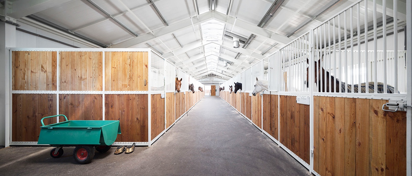 При будівництві конюшні для стійлового або групового утримання, в ній потрібно обладнати годівниці та поїлки, можна спорудити денники. Обов'язково передбачити наявність допоміжних приміщень, боксів: