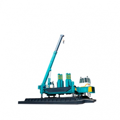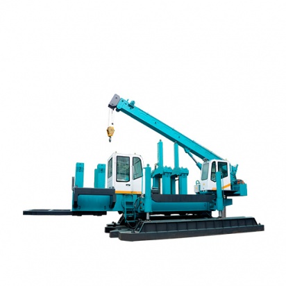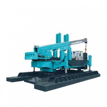 Вантажну раму, направляючі колони з розміщеними на них затискним механізмом, що вдавлюює, гідроциліндри робочого і зворотного ходу, крановую установку, а також засоби управління. Палевдавлююча установка має металеві противаги для анкеруання. Крім центральних колон, у установки є бічні колони, при перестановці робочого обладнання на які установка може вдавлювати палі поруч з існуючими стінами або іншими перешкодами з зусиллям до 70% від номінального. Гідроциліндри виготовляються за технологією REXROTH із застосуванням японських ущільнень MOK.